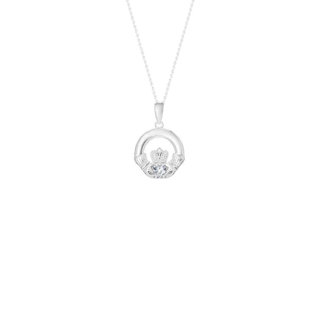 Meaningful, symbolic, and beautifully crafted, this Sterling Silver April Birthstone Claddagh Pendant is a timeless expression of love, loyalty, and friendship. The iconic Claddagh design hands for friendship, a heart for love, and a crown for loyalty is beautifully highlighted with the April birthstone, a clear, diamond‑like crystal symbolising strength, purity, and everlasting love. Set in polished sterling silver, this pendant is a thoughtful keepsake for everyday wear or a meaningful gift for someone special.